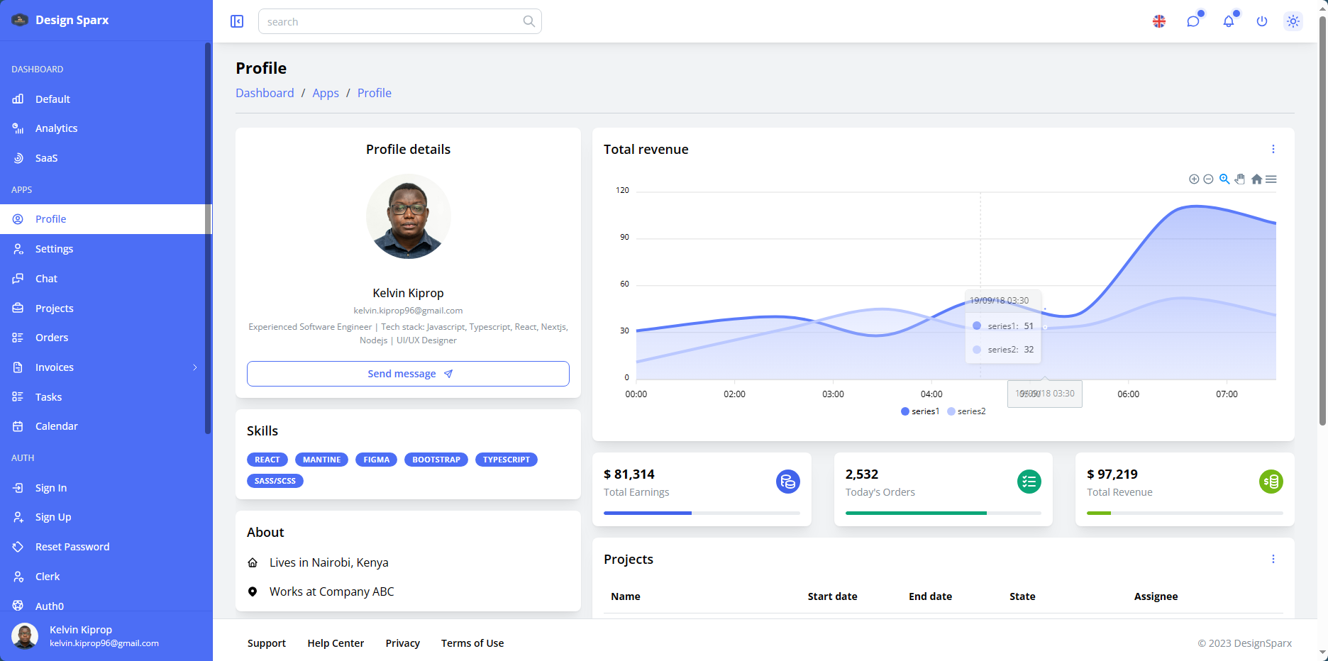 Mantine admin template comes with hundreds of UI elements, forms, tables, charts, pages and icons that helps you to create your web apps or applications faster.
